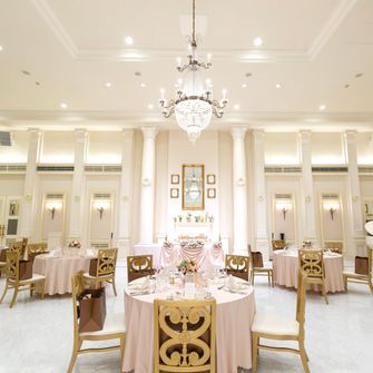 クラシカルな雰囲気にしたかったので会場のホワイト×ゴールドを生かし高級感のある会場づくりを意識しました🕊✨