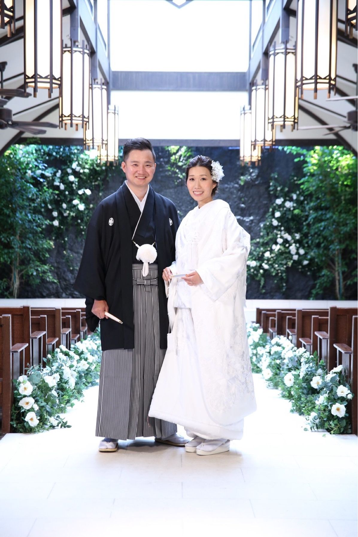 正面には滝があり、 モダンな空間にもなり和洋折衷、ドレスでも和装でもどちらも合うチャペルに一目惚れしました。