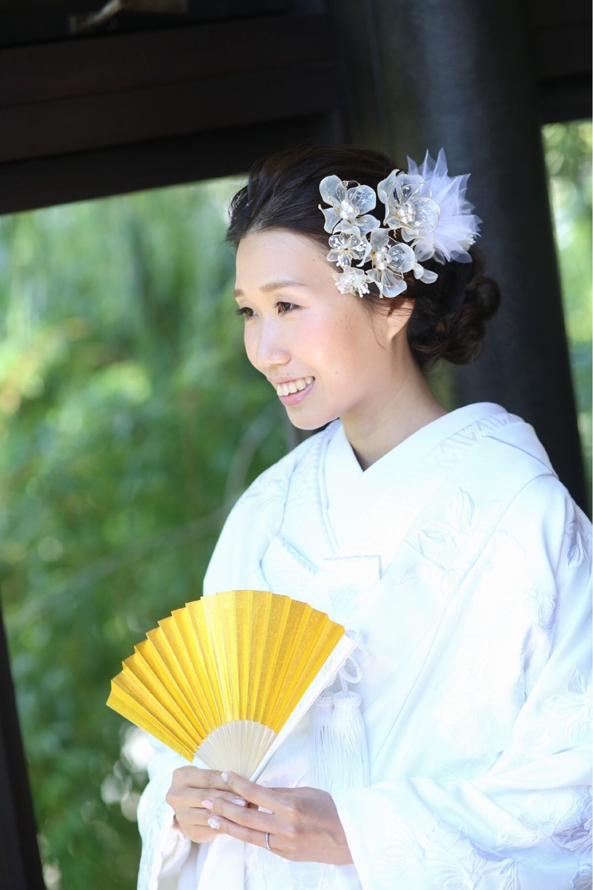 本来の白無垢の美しさを大切に、大人っぽくクラシカルになるよう小物はそのまま白の無地の物にしました。