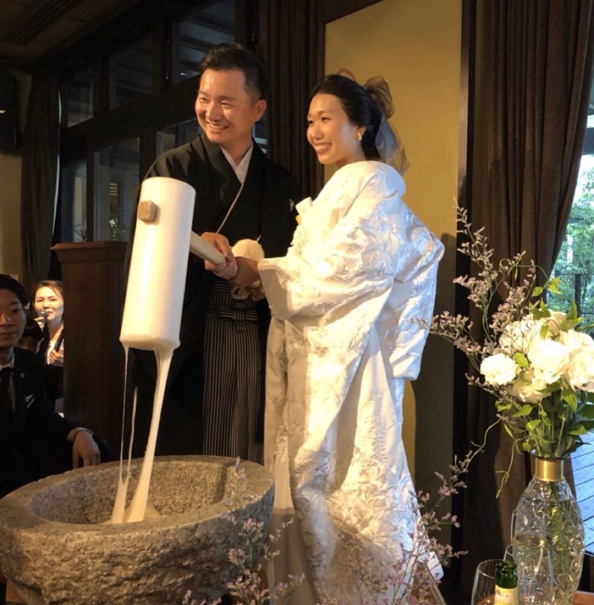 白無垢という事もあり、悩みに悩み考えついたのがお餅つきでした。