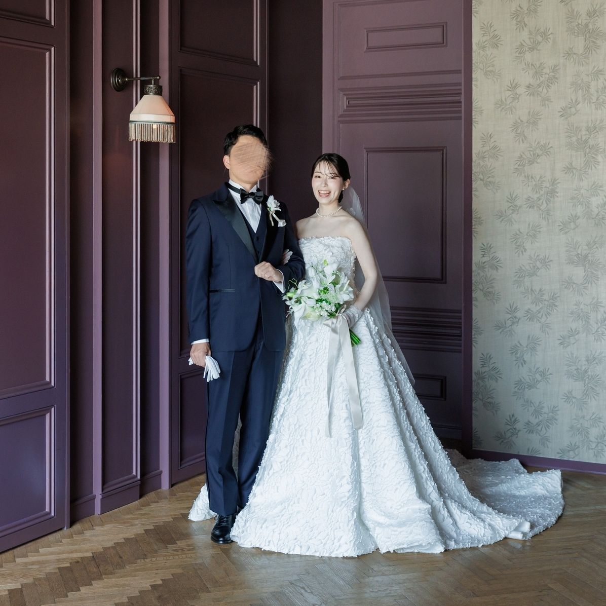 Aラインシルエットで王道感がありつつも、個性的なデザインで特別感がありました。