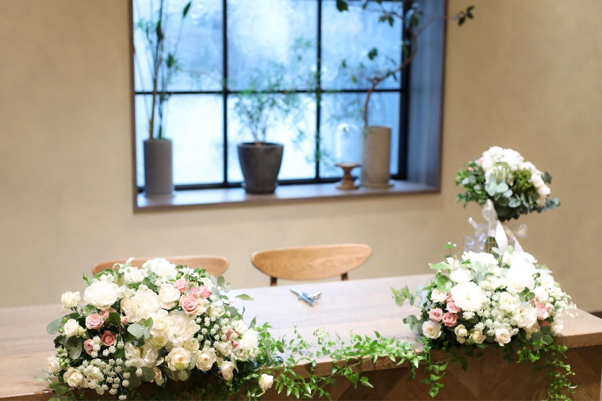 シンプルでナチュラルな大人ウェディングをテーマにしてる会場なので、飾り付けに関してほとんど自分達で作ったり、考えたりしなくても、可愛い会場だったので色んな手間がなくなって助かりました。