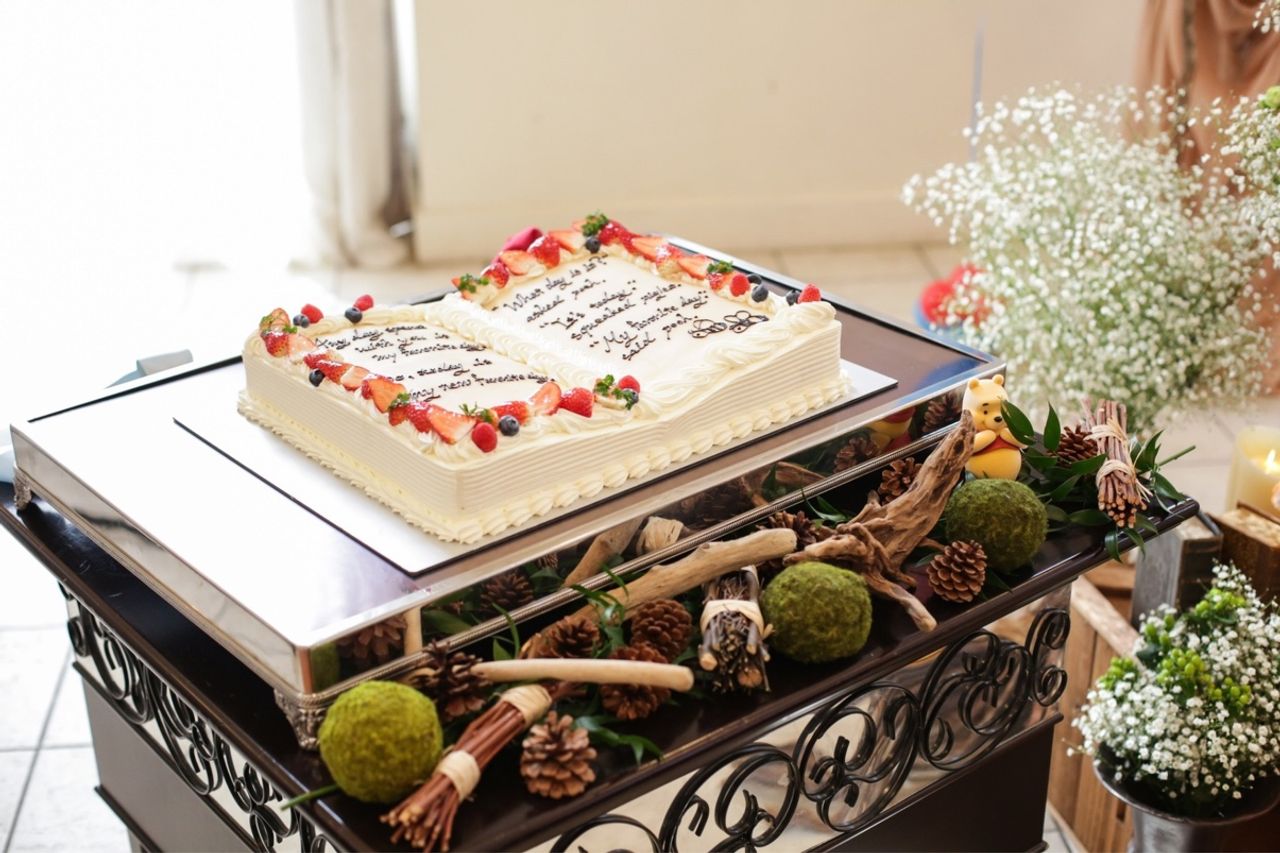 プーさんのハニーハントに出てくるような本型のケーキをお願いし、とても素敵なケーキを作ってもらいました!