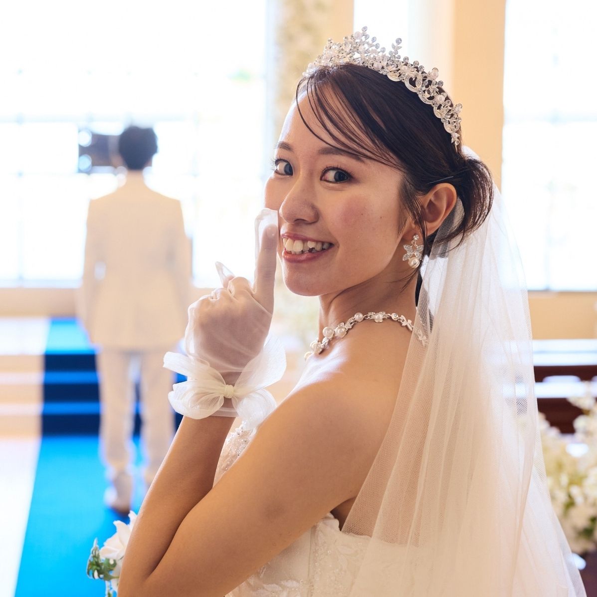 挙式ではキラキラのティアラを着用しました。