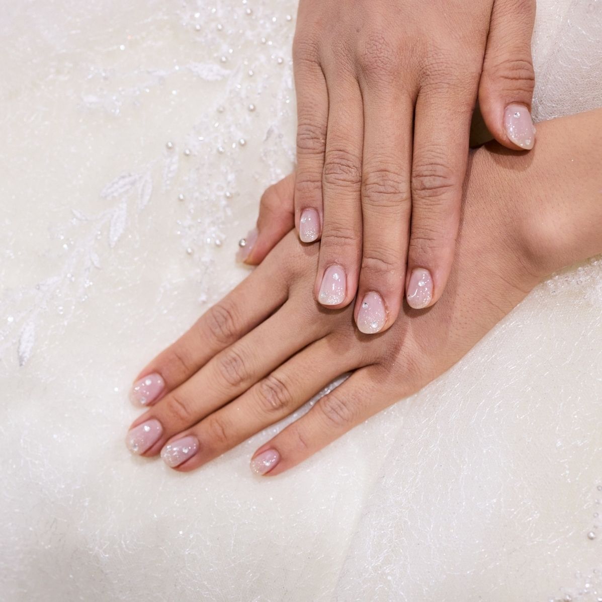 Instagramで検索し、元々ラメが好きなのでラメを入れて白色にし、ブライダル感を出しています。