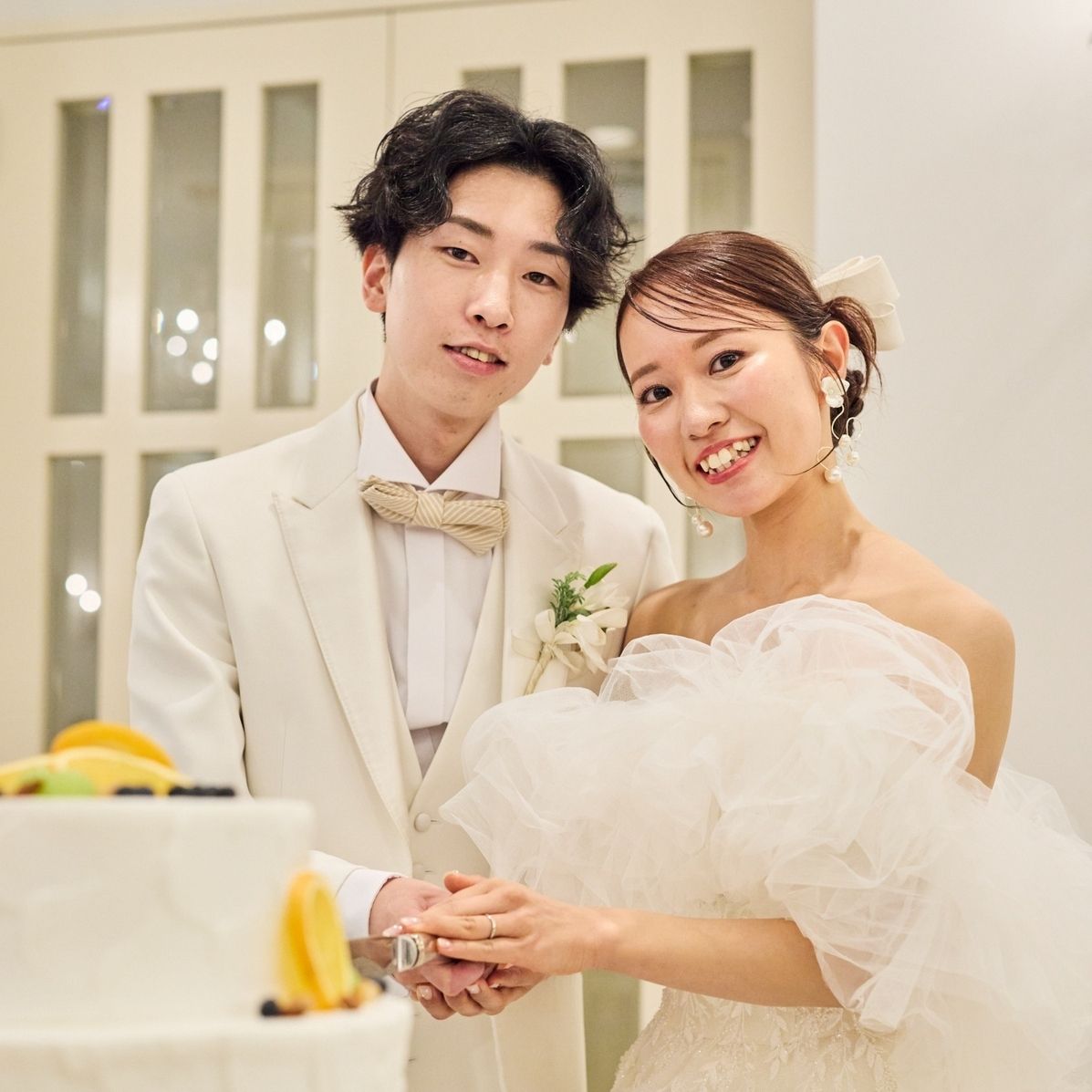 披露宴からは白のビックリボンをつけています。