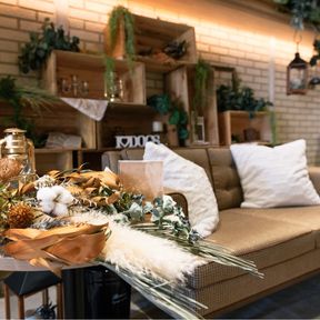フラワーよりグリーンの方が好きな私は生花を使わず、色味やインパクトをつけたいところにはドライフラワーをチョイスしました🌿木材の装飾もたくさん取り入れて、アットホームな雰囲気で装飾しました✨宴外の装飾では各ブース、エリアごとにテーマを決め、装飾には統一感を残しつつ好きなものを、諦めない!本当に満足のいく会場作りをすることができました🙏💕装飾アイテムはDIYを多く使用し、プランナーさんのセンスで実際に飾ってもらい、理想以上の完成度になって、自分達らしさも伝えることができ、ゲストも楽しめる装飾にすることができました❤