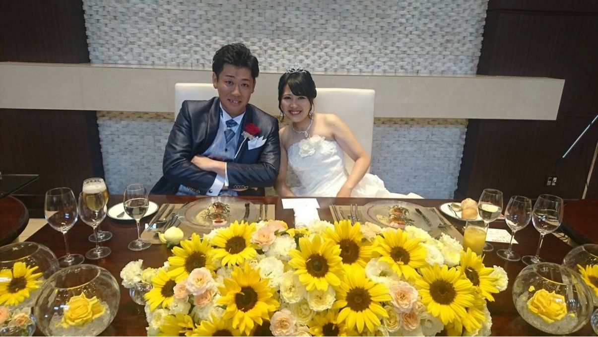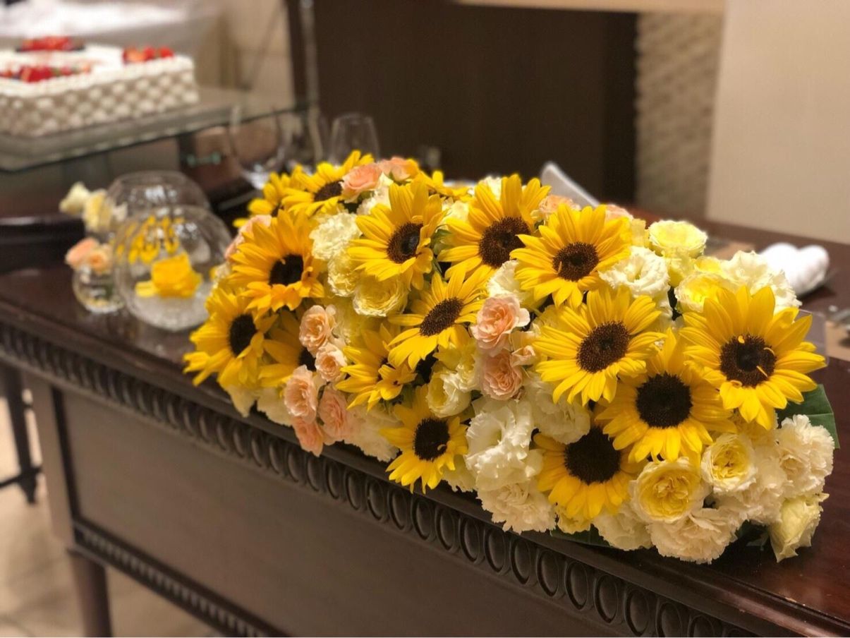 5月だったのでひまわりは難しいかなと思ったのですが、どうしても妥協したくなくてお願いしました。笑 プロポーズの場所だったひまわり畑みたいにしたくて、8割ひまわりにして下さい!とお願いし全部ひまわりにしました。