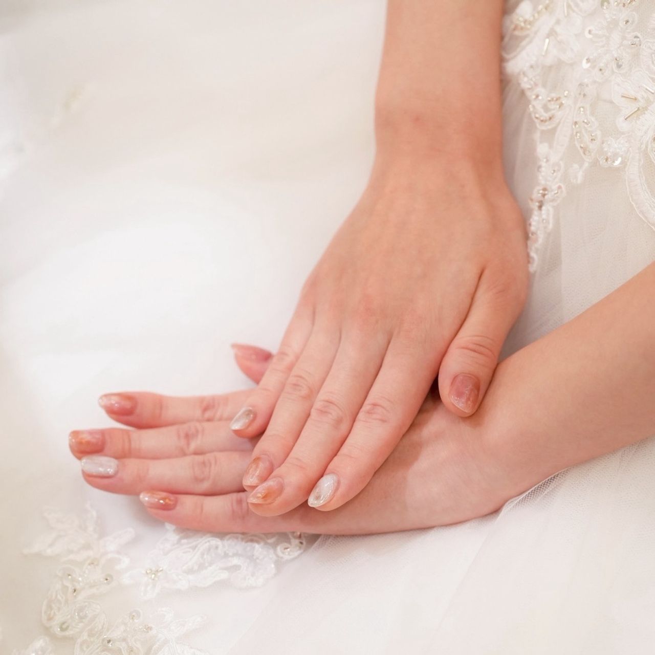 ネイルは、白とピンクを基調としたニュアンスカラーにしました。