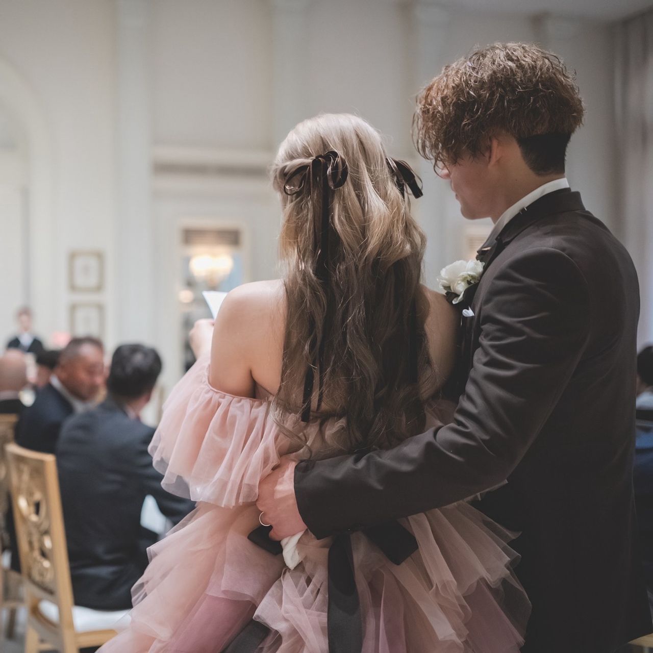 3way仕様に惹かれ、披露宴中はもふもふのスタイルで、退場時にはもふもふを外してシンプルで綺麗な印象に変えられたところが良かったです。何より、ドレスの色当てでゲストをしっかり騙せたことが嬉しいポイントでした。最初は少し抵抗もありましたが、結果的にピンクにして本当に良かったと思っています。