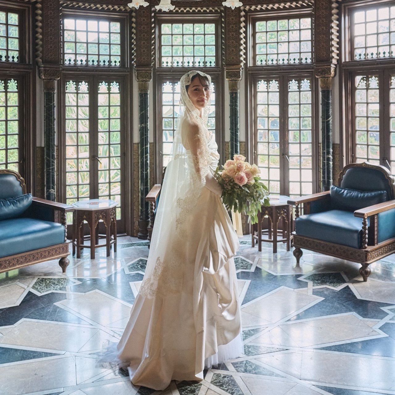 スペイン建築での挙式ということで、マリアベールは絶対に着けたいと思っていました。