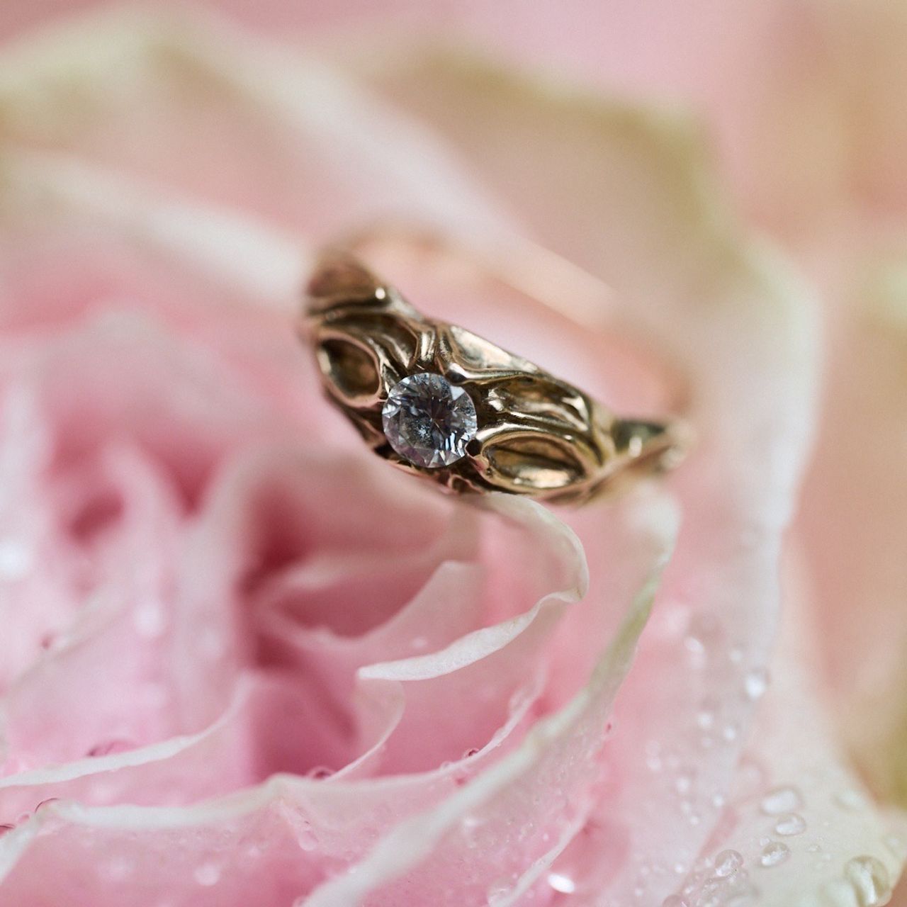 私がヴィンテージ好きでブランド物を持たないので、新郎が悩んだあげく自分でゼロからデザインを起こしてヴィンテージ風デザインの指輪を特注しプレゼントしてくれました。