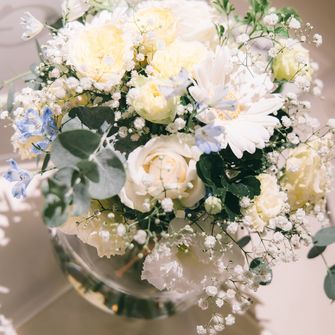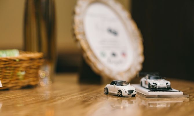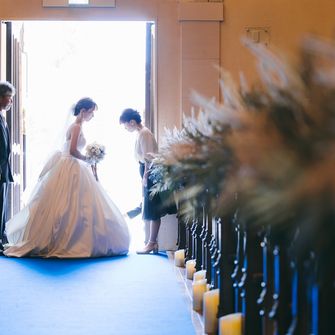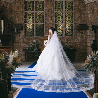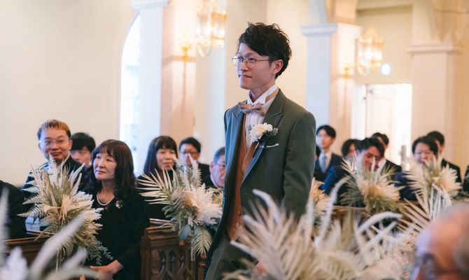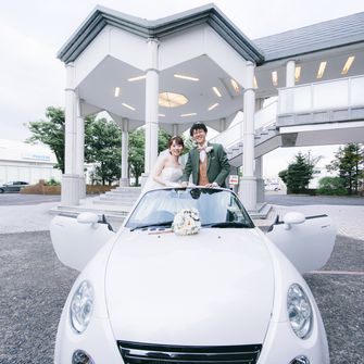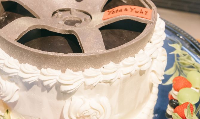 夫婦で車が好きなため、車にこだわった演出を取り入れました。ウェルカムスペースにホイールを置いたり、夫の友人に車を持ってきてもらって会場前に並べたりしています。ウェディングケーキもホイールをイメージしたデザインです!式場選びでは、車を会場前に並べられることと、教会の雰囲気に惹かれたことが決め手となりました。