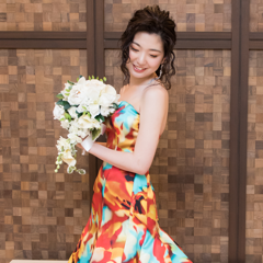 ドレスに合わせたカラーメイクにしました。