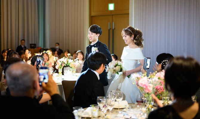 両親はもちろん友人ゲストへのありがとうの気持ちを込めて、ゲストが楽しめる空間や時間作り、ゲストファーストを意識しました。特に結婚式参列経験が少ないゲストがほとんどだったので、困ることがないような工夫をしました。