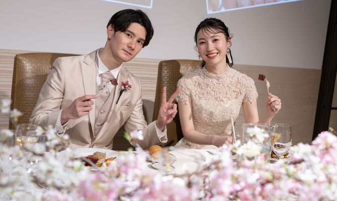 結婚式のテーマは「大人可愛い桜wedding」です。2人とも落ち着いた雰囲気が好きで、高級感と温かみのあるグランド ハイアット 東京を選んでいます。一足早い春の訪れを感じながら、ゲストがリラックスして楽しめるように準備しました。天井が高い素敵なチャペルやキッチン付きのレジデンスバジル、駅直結のアクセスの良さなど、グランド ハイアット 東京にして良かったと思っています。