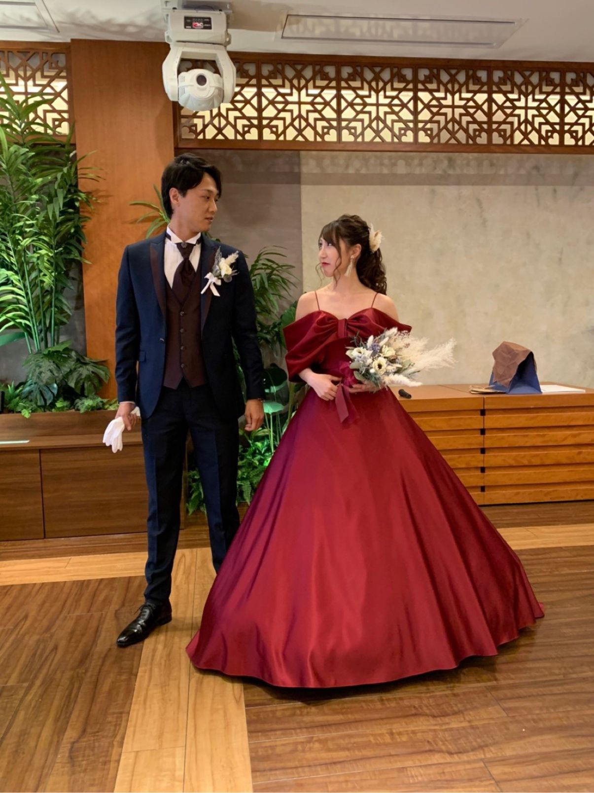 元々カラードレスを着る予定はなかったのですが、お店に飾ってあった真っ赤なドレスに一目惚れでした。