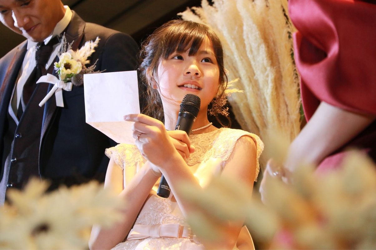 娘がプランナーさんと相談して、サプライズで手紙を書いて読んでくれた事です。ママが再婚して嬉しい事や、これからも3人で仲良くやっていこうね、というような内容が書かれており、とても嬉しかったです。