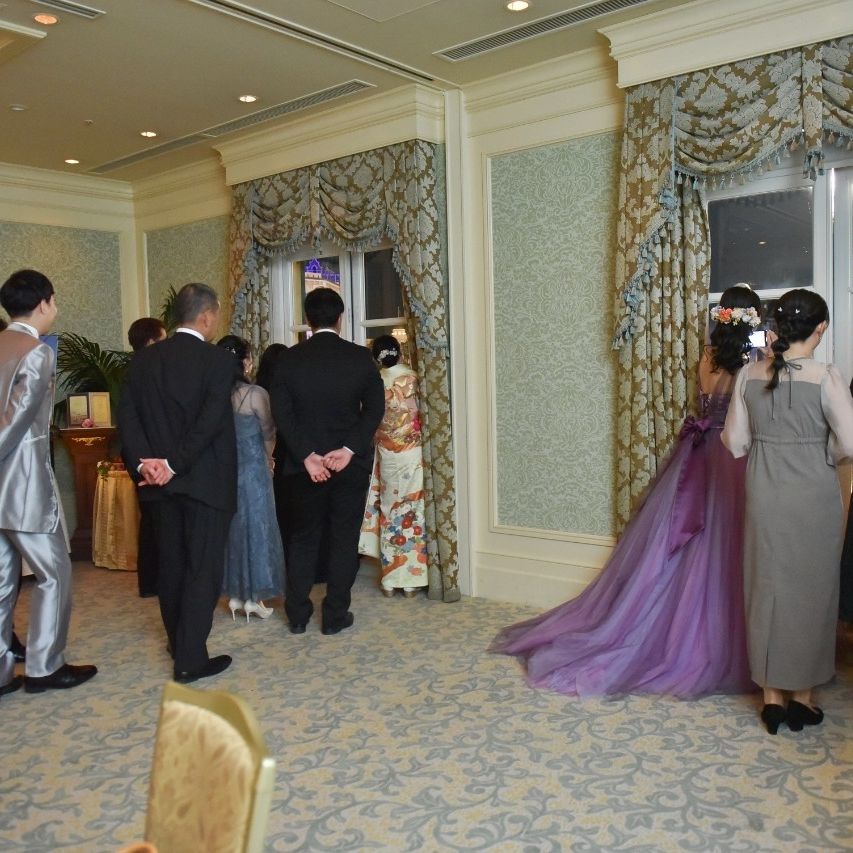 披露宴会場から見えるハーバーショーにとても感動してくれました。初めて観た友達は写真を撮ったり、次々出てくるキャラクターにとても感動していました。