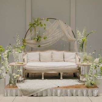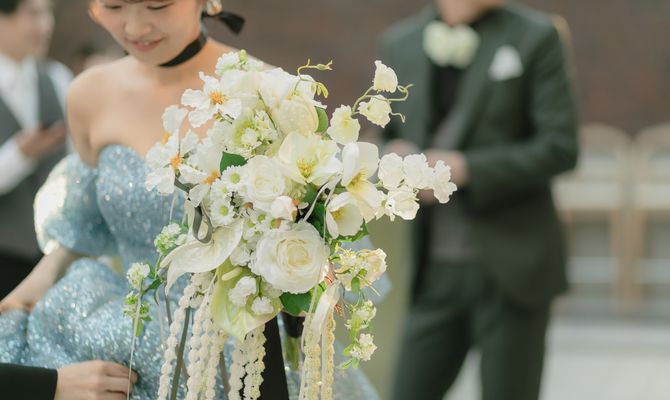 二人ともフランスにまつわるものを好きになりがちで、優美な曲線美や柔らかい印象が好きだったようです。加えて、大切に時を重ねたからこそ、懐かしさも感じながら、厳かにお互いや皆様への愛情が伝わるような1日にしたいと思っていました。2人らしく、穏やかでありつつも軽やかで心が躍る。それでいて結婚式ならではの幸福感や華やかさも忘れず。そんなことを考えていたらテーマが4つになっていました。