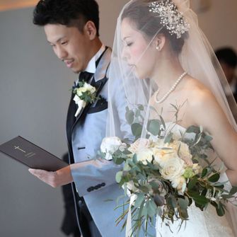 12月といえばクリスマス。「大人可愛いクリスマス」をコンセプトに装花を赤と緑でまとめてみたり、ウェルカムスペースに飾る写真のフレームにゴールドを取り入れ煌びやかな印象に。パーティールームはブラウンで統一された空間だったので、落ち着いた雰囲気も出せたかと思います。