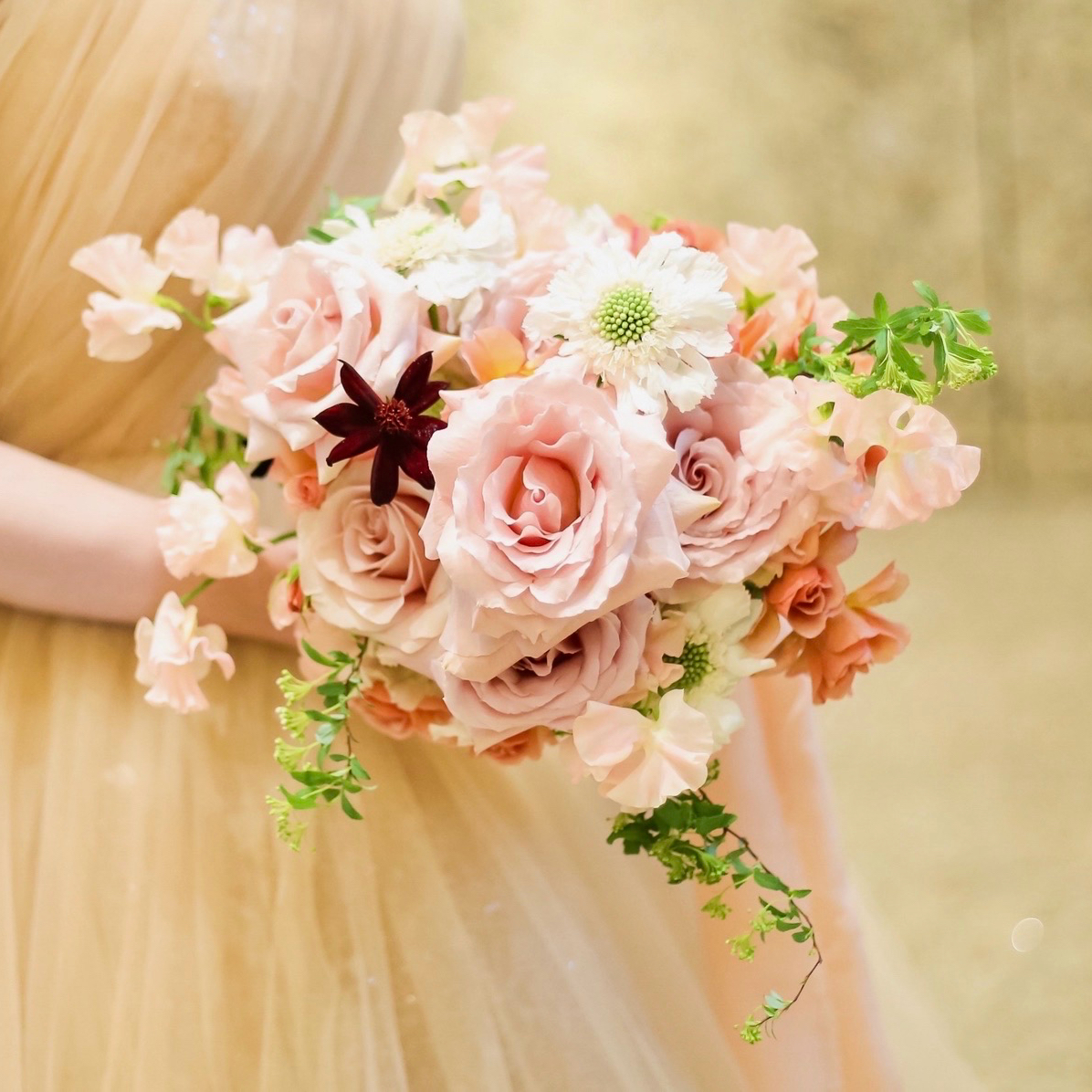 柔らかい優しい色味のチュールが重なった中にスパンコールの上品に煌めいていてとても美しかったです!