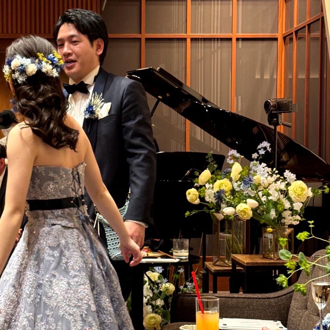 披露宴会場は床が柔らかかったので「もっとヒールは高い方がよかったかな?」とも思います。披露宴会場内では、ドレスを結構引きずりました。