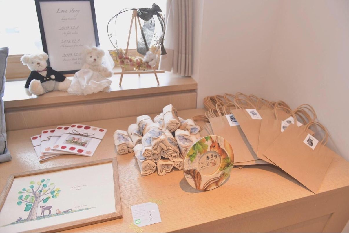 新郎をくま 新婦をうさぎとして、所々に取り入れました。