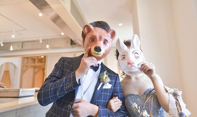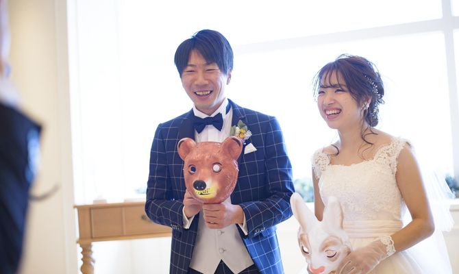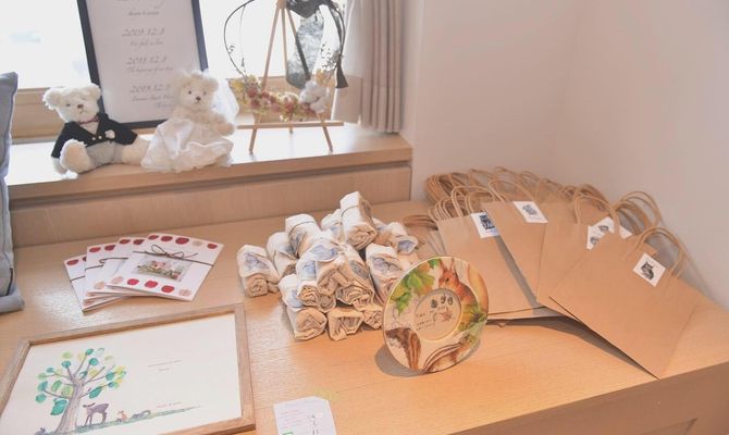 森のパーティーをコンセプトにしました。新郎をくま 新婦をうさぎとして、所々に取り入れました。