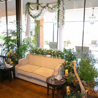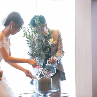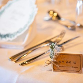 いっぱいのグリーンとアットホームな雰囲気の中、ゲストみんなに楽しんでもらえる結婚式をテーマにしました。THE ORIENTAL TERRACEはエシャロットソースを使ったお料理の美味しさと、会場の雰囲気が決め手となり選びました。