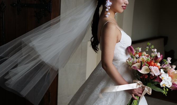 ブーケやウェディングドレス、アクセサリー、装花やケーキも大人の可愛いさを意識して、予算の中で自分の好きとゲストが笑顔になってもらえるように追求しました。