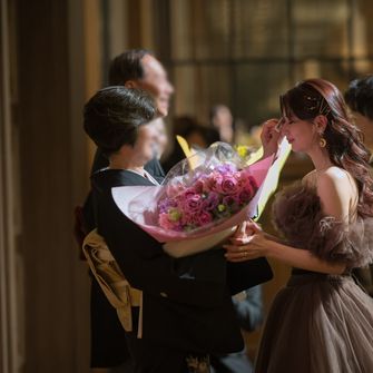 ザ ストリングス 表参道は12月になると建物内もクリスマスの装飾が施されます。そのため、披露宴会場だけでなくエントランスからクリスマスの雰囲気で統一することができました。