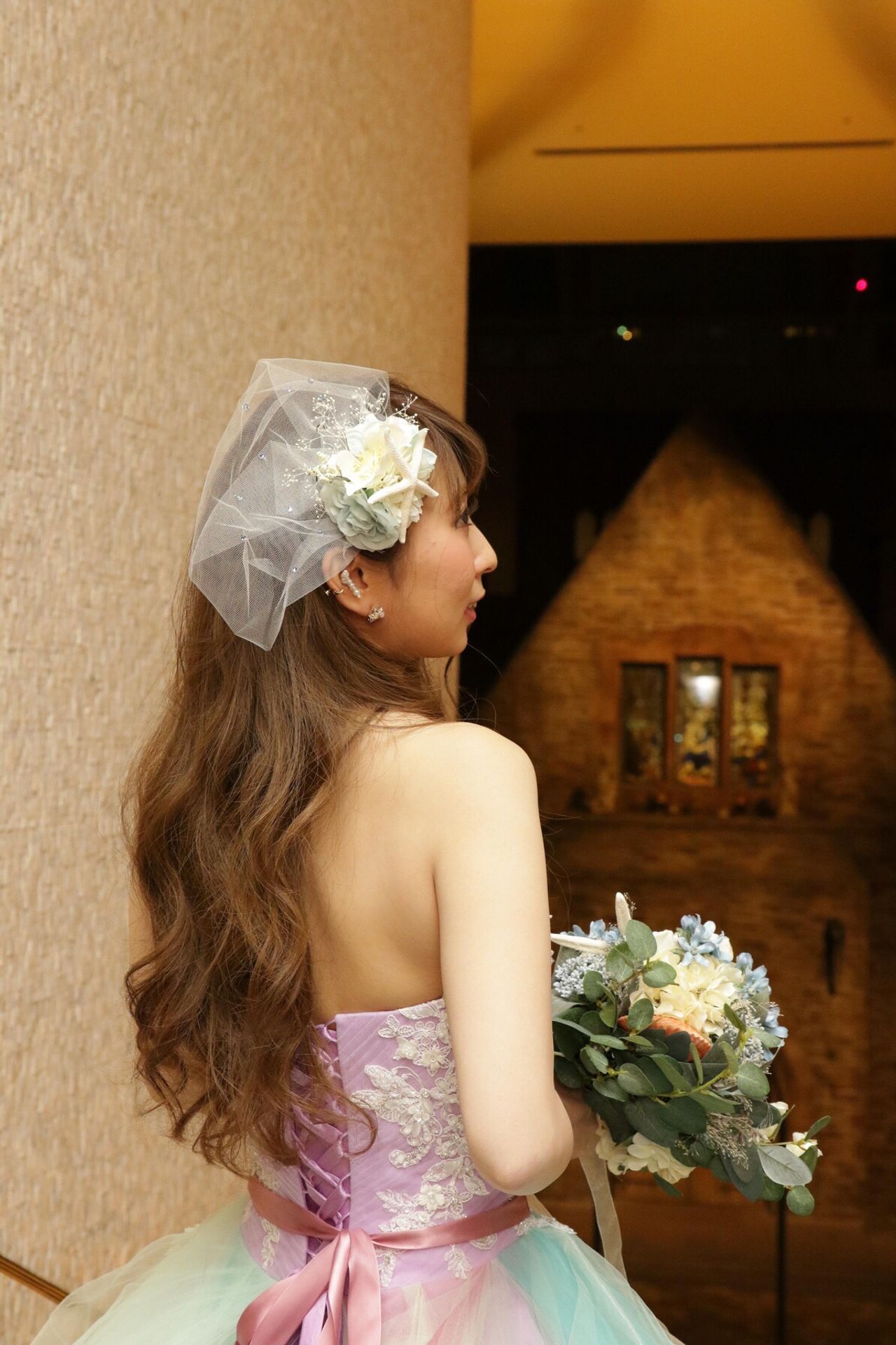 カラードレスではアリエルのイヤリングを付けました。
