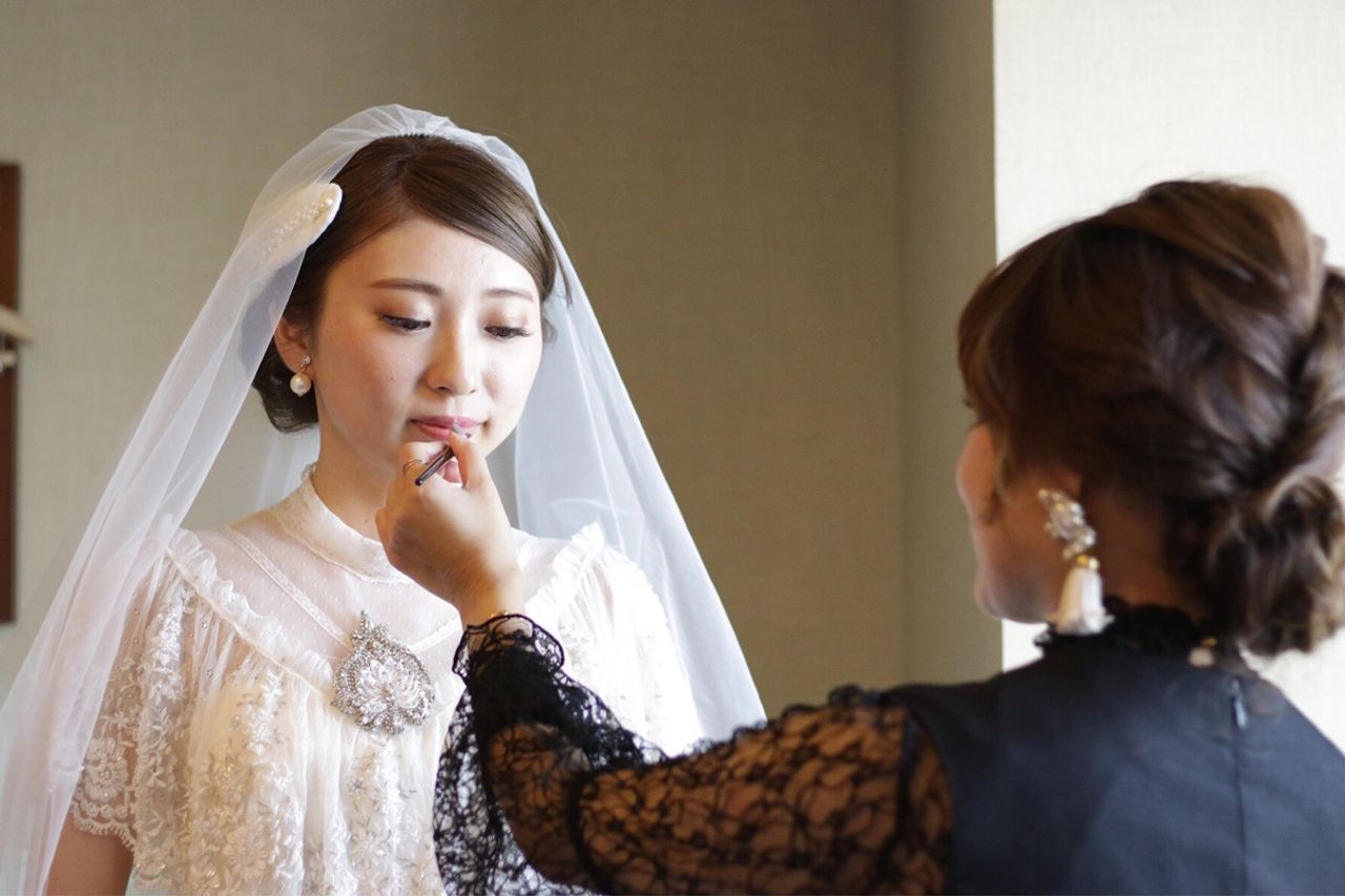ヘアメイクは高校時代の美容師の友人にしてもらいました。 メイクはcharmerさんに外注にしました。