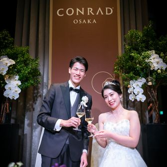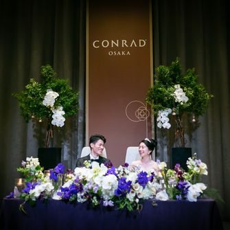 コロナ禍もあり、結婚式が初参列の友人や遠方から久しぶりに会う友人の参加が多かったため、オーソドックスな演出を中心に、みんなが楽しめて少し贅沢でエレガントな空間にしたいと思いました!コンラッド大阪はプロポーズされた思い出のホテルで、オシャレでスタイリッシュな雰囲気に惹かれました。レストランの方もウェディングの方もお堅すぎず、聞きやすいけれども的確で、上品な接客にも魅力を感じました。