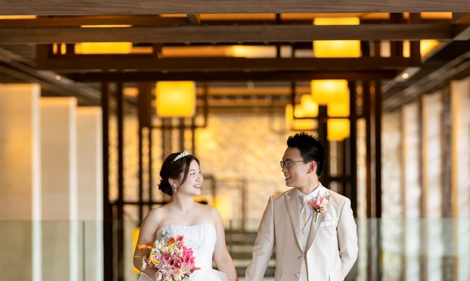 リゾート婚と言えば真っ白なチャペルが王道のイメージでしたが、瀬良垣島教会は木の温もりを感じる柔らかい雰囲気のチャペルだったことにも惹かれました。また、親族が泊まりやすいようホテルが併設されているところも推しポイントです。