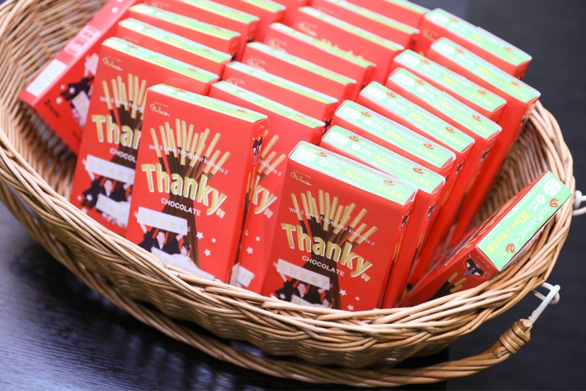箱のデザインをオリジナルにしたかったので、前撮りの時にポッキー用に写真を撮ってそれを使用しました。