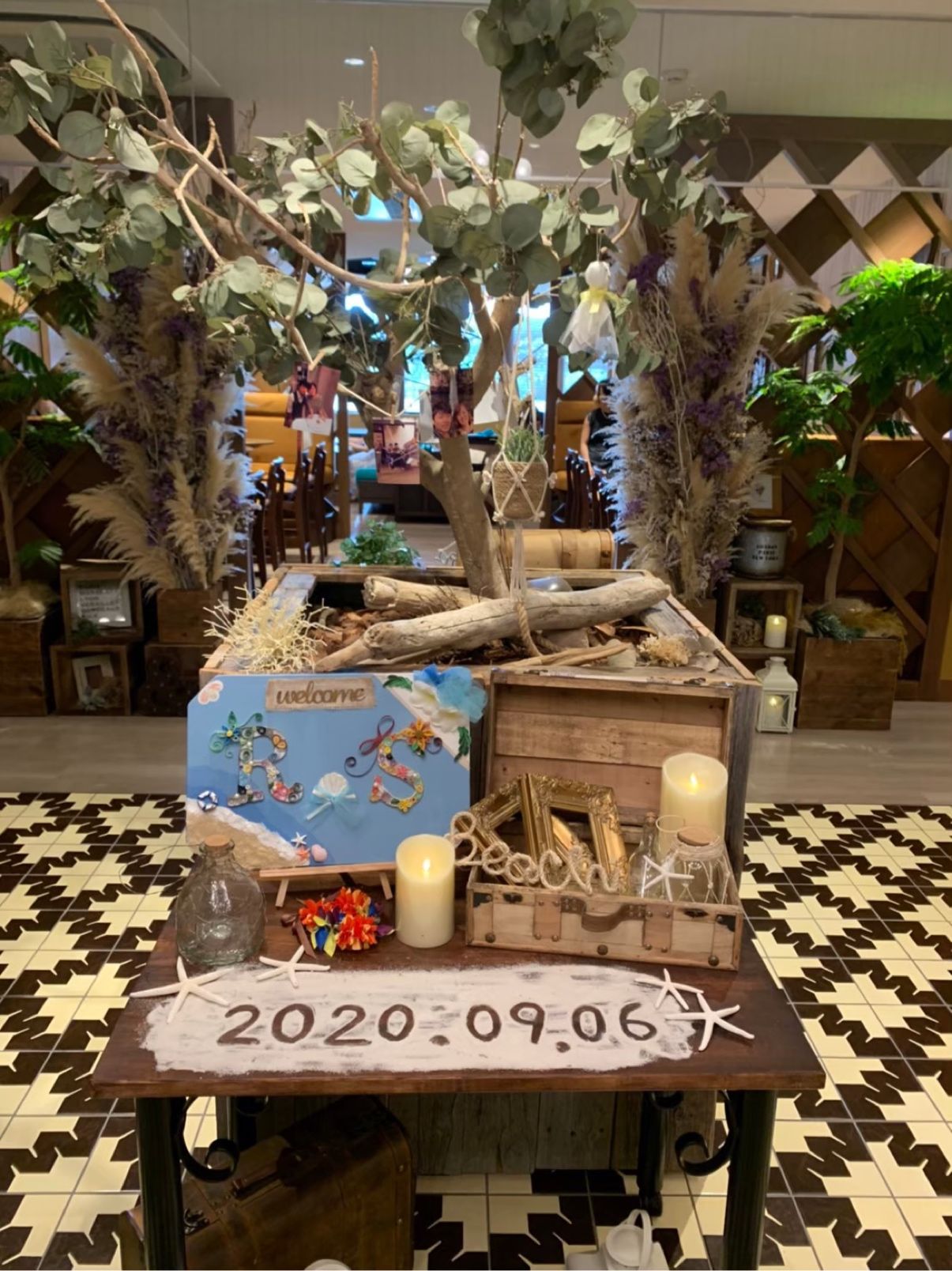 ・ウェルカムスペースやゲストテーブル、お手洗いまで手作りのものであふれていて、細やかな気配りが二人の心からのおもてなしと頑張りを感じられた。