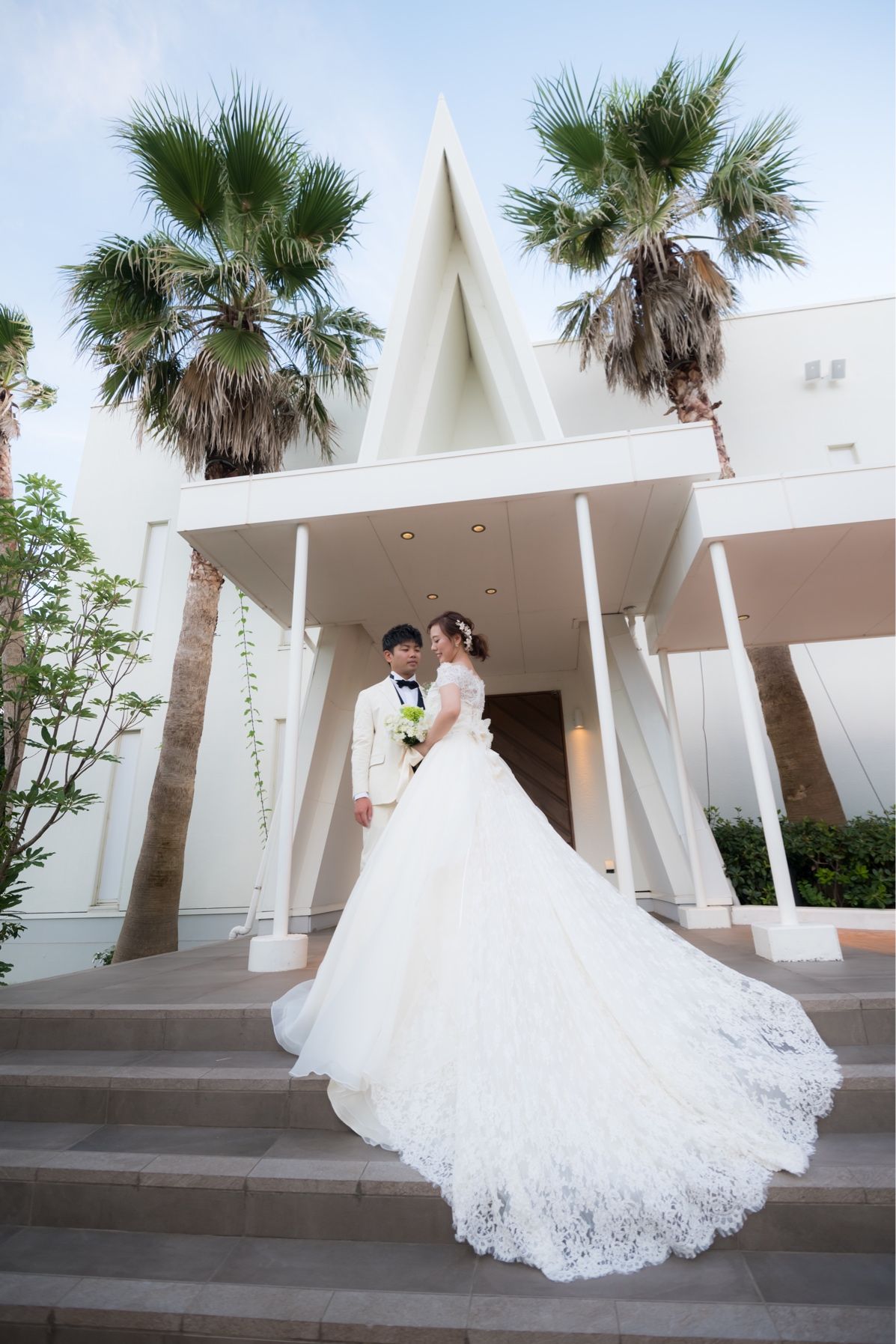 チャペルは2階にあるので、“空の青”、“海”、“会場の白”のコントラストが爽やかさとリゾート感を演出してくれます♪