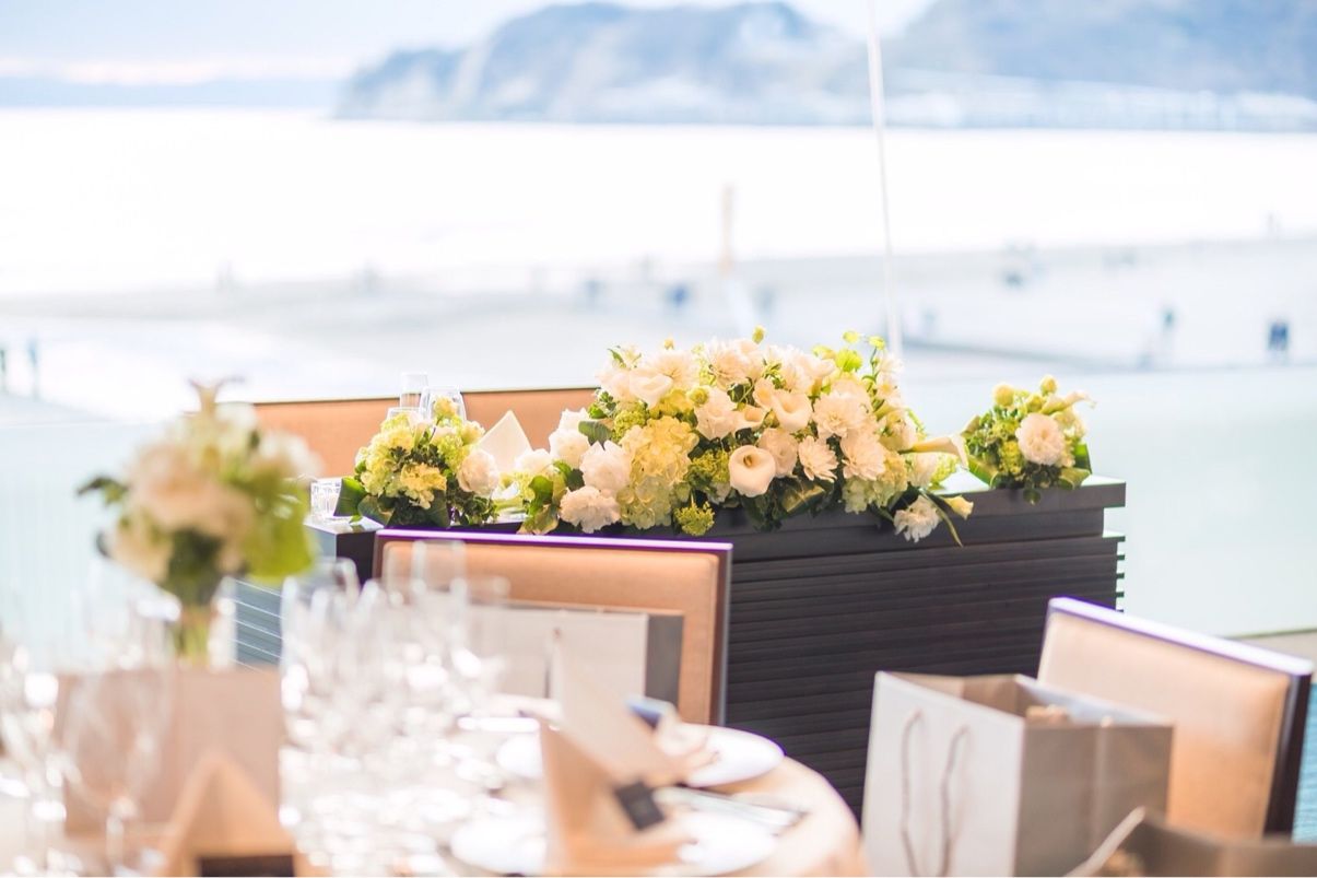 装花を置く際に鏡張りの板の上に置くと反射して、より華やかになると卒花様から伺っていたので鏡をお願いしましたが、提携先に用意がなく諦めました。