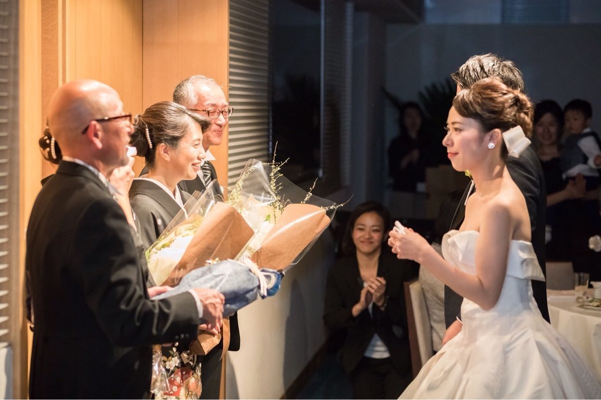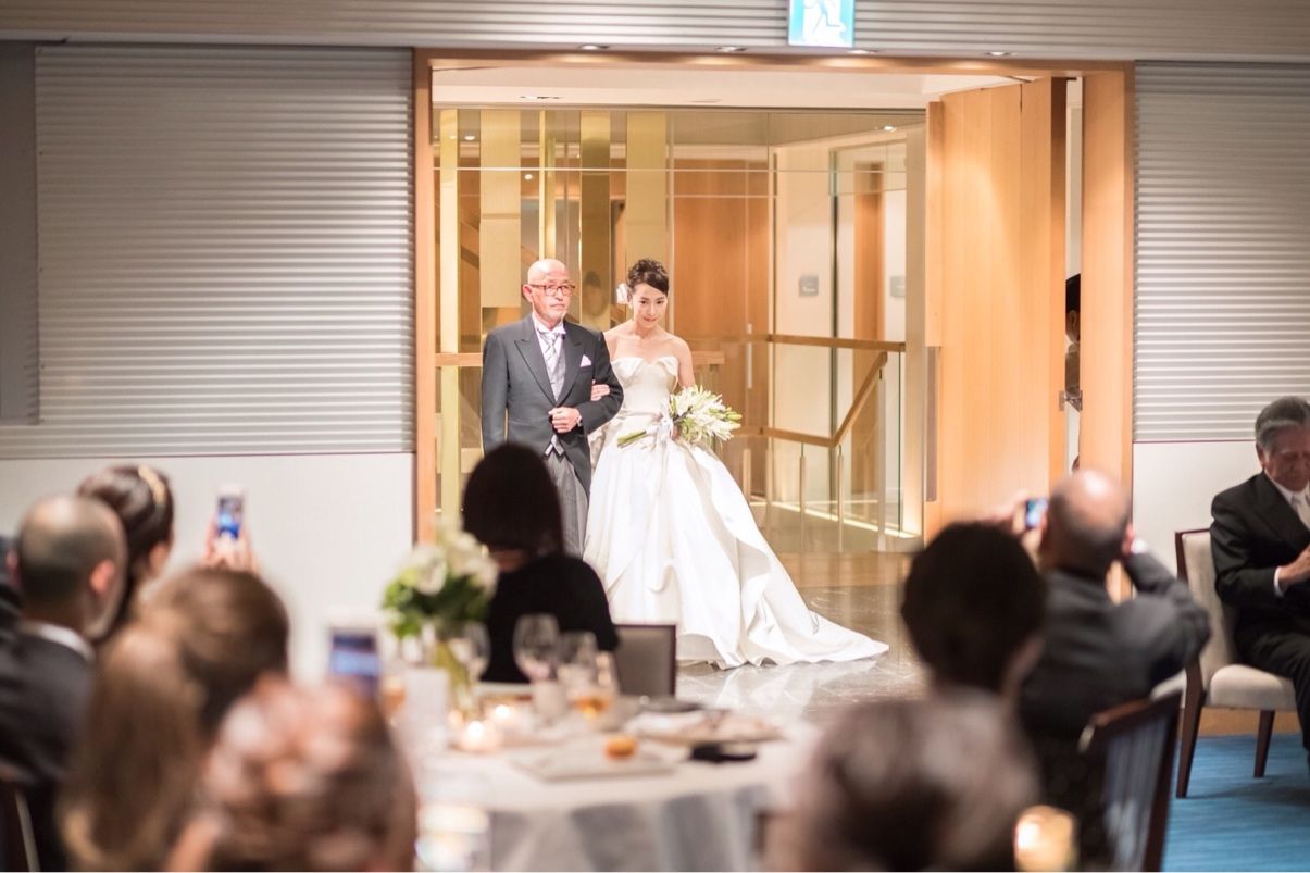 昔から和婚と決めていてバージンロードは父と歩けないと思っていたのですが、披露宴会場でお色直しからドレスで登場するシーンで母リクエストの美女と野獣を流しながら父と登場するシーンは歩きながら泣きそうになりました。