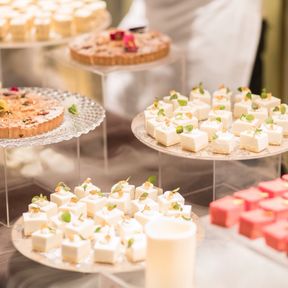 ウェディングケーキ、お料理、デザートビュッフェ