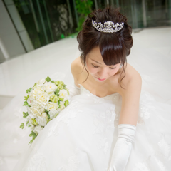 挙式:王道のすっきりシニヨンにティアラ。