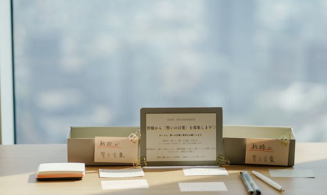 ・挙式での誓いの言葉をゲストに書いてもらい、挙式本番で新郎新婦が1枚ずつ引く