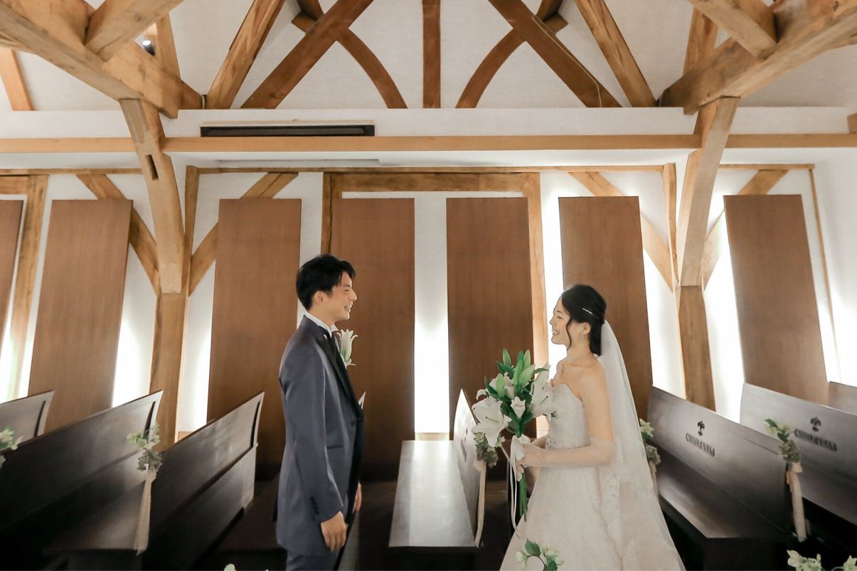 ナチュラルで自然な雰囲気や、アンティークな雰囲気がお好きな方におすすめです!木をメインに作られていてオレンジの暖かな光も相まって、アットホームな笑顔溢れる式をあげることができました🌿チャペルのすぐ隣にお支度部屋があり、その部屋がまたとても可愛らしいので、お支度ショットがとても可愛く撮れました😊