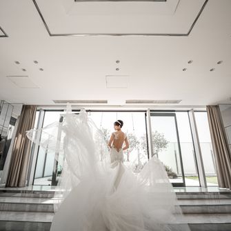 テーマは「ロマンチックで上品」です。おしゃれな雰囲気を大切にしながら、感謝の気持ちを周りの人に伝えることを目指して準備してきました!最初に思い描いていた雰囲気と、実際に式場作りを進める中で感じたイメージが少し変わってしまったため、会場を理想通りにするためにキャンドルを基調とした装飾を取り入れています。また、会場に外階段があったため、シンデレラのように登場することで、よりロマンチックな雰囲気を演出できたと思います💗