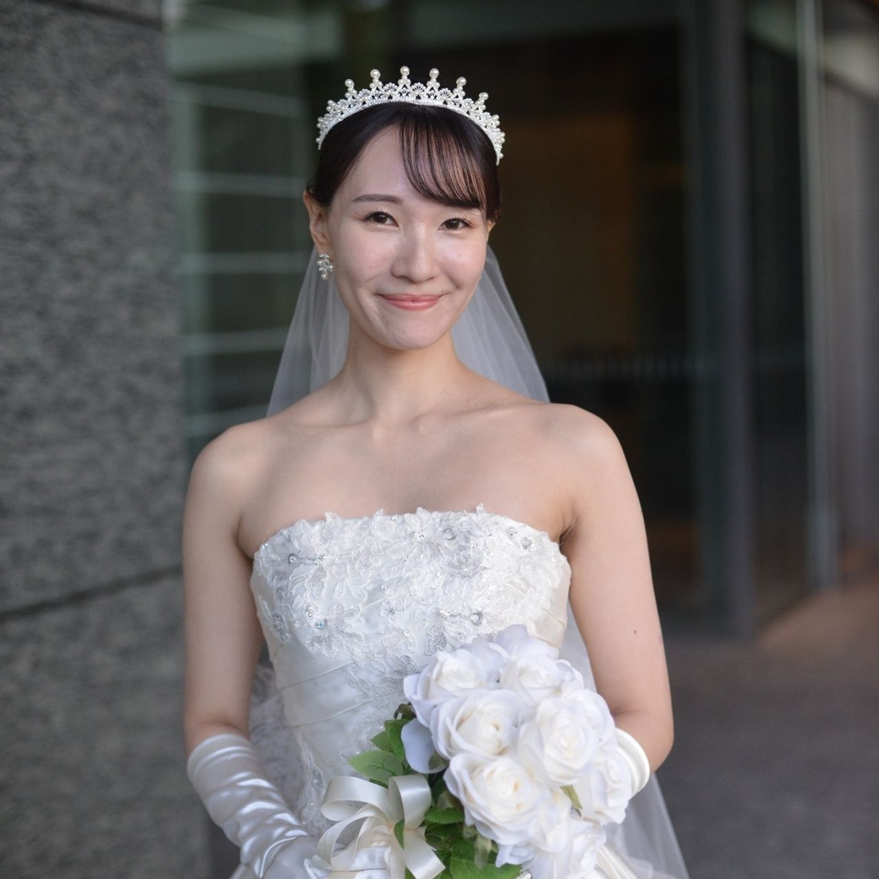 挙式はパールのティアラ、披露宴はティアラを外してパールのピン、お色直しではビジューのティアラをつけました。