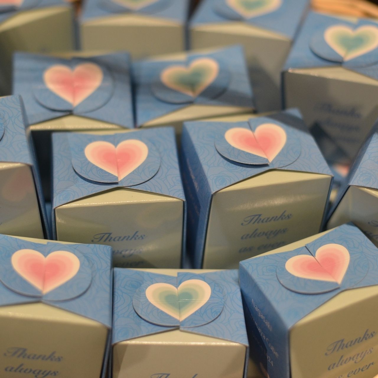 引き菓子は全員同じでコンラッド東京のチーズケーキにしています。