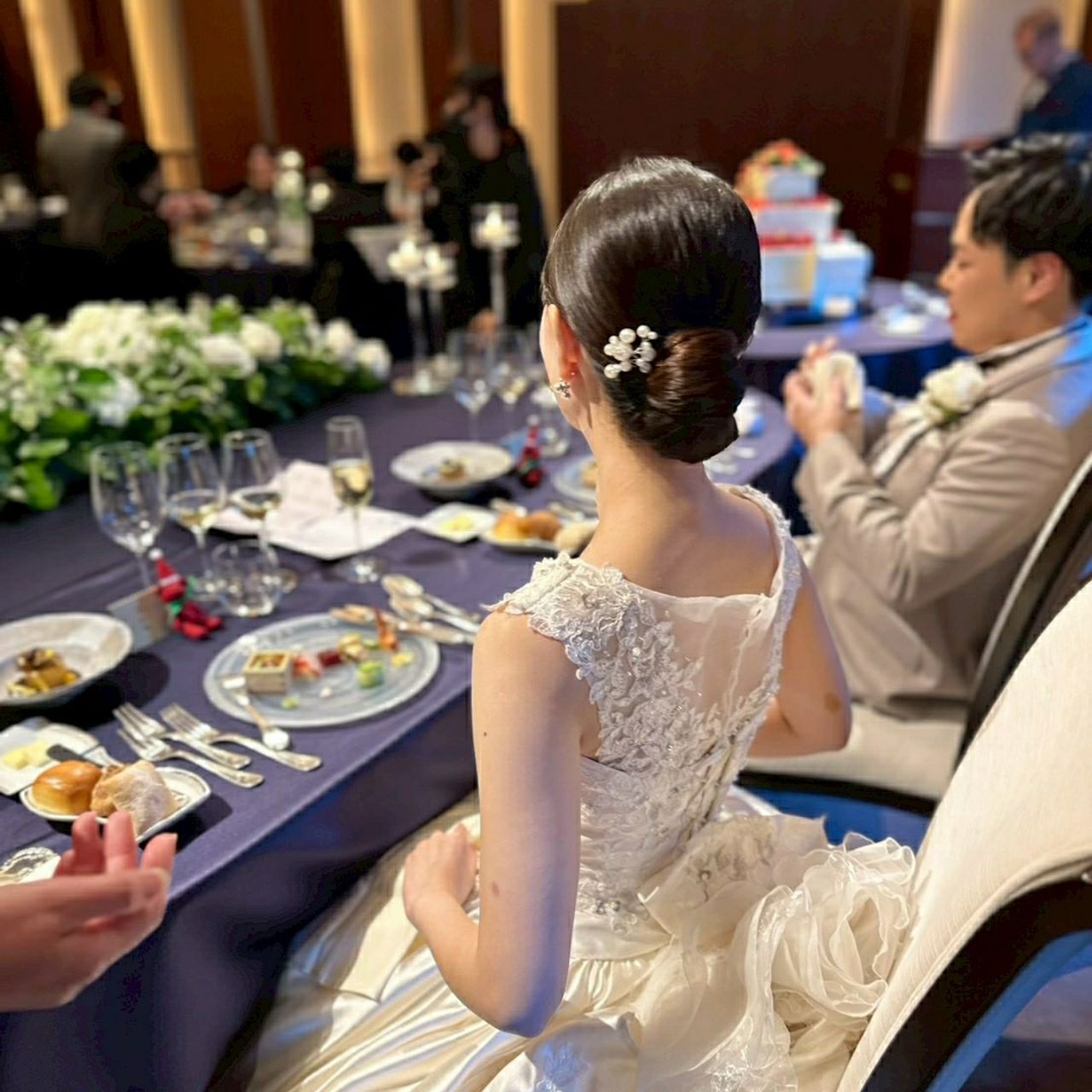 挙式と披露宴はシンプルなシニヨン、お色直しはハーフアップにしました。