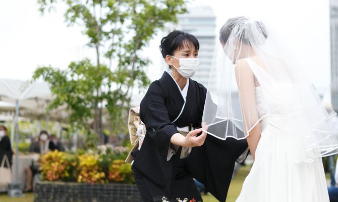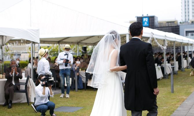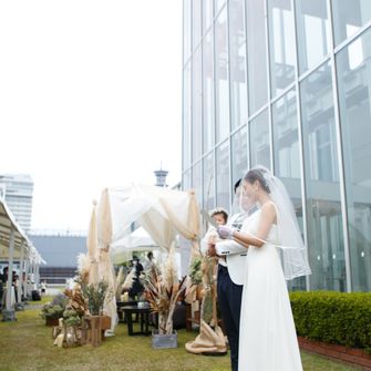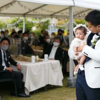 コロナ禍ということもあり屋外での結婚式に変更しました!開放感溢れる新しい結婚式の形ができ、ゲストからも大好評でした♡
